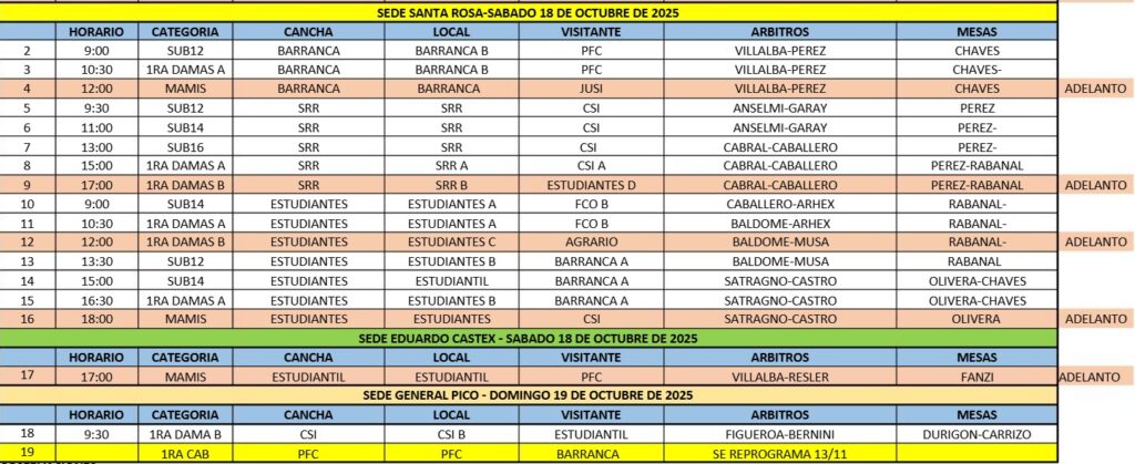 La Barranca A 9 (Lucía Maranzana, Luisina Recher -2-, Sofía Fernández -3-, Brisa Ramos -2-, Emilia García) La Barranca B 0; Estudiantes A 5 (Gisela Martínez, Pilar Giacobbe -2-, Paulina Susvielles, Alma García) – Estudiantes B 1 (Delfina Correa); Ferro 1 (Lourdes Pompozzi) – Santa Rosa Rugby 1 (Josefina González). Penales australianos: Ferro 2-0 (María Sosa, Lourdes Pompozzi). La tabla: La Barranca A y Estudiantes A 6, Ferro 4, Estudiantes B, La Barranca B 3, Santa Rosa Rugby, Pico FC 1; Independiente 0. Goleadoras: Brisa Ramos (La Barranca A) 8, Sofía Fernández (La Barranca A) 5, Carmela Martínez (Estudiantes A) 3, Lucía Maranzana, Emilia García y Luisina Recher (La Barranca A), Pilar Giacobbe y Gisela Martínez (Estudiantes A), Lourdes Pompozzi (Ferro) 2.