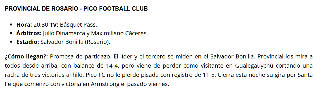 Desde las 20:30 gran partido entre Provincial de Rosario y Pico Fútbol.